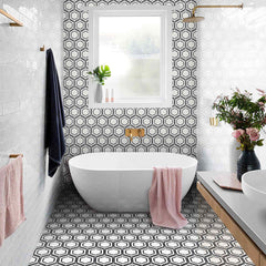 Elevate your space with the Bianco Noir Hexagon Marble Mosaic—a striking fusion of timeless elegance and contemporary design. Crafted from authentic marble, this luxurious 305x265mm tile features classic white marble hexagons framed with rich black marble borders, bringing a bold, architectural edge to a traditional material.