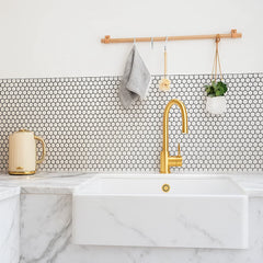 Brighten your space with the Eterna Hexagon Piccolo White Gloss Mosaic – a fresh, contemporary tile featuring small hexagon pieces for a clean and detailed finish. The glossy white surface reflects light beautifully, making it perfect for enhancing bathroom walls, kitchen splashbacks, and stylish floor areas with a bright, polished look.