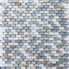 Bring a fresh, breezy vibe to your space with the Coastal Blue Brick Mosaic Wall Tile. This elegant mosaic features a harmonious mix of glass and natural stone in a charming brick pattern, combining soft whites, ocean blues, and shimmering silver tones. The result is a serene and stylish look that captures the essence of coastal living.