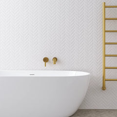 With a soft white artisan finish, they introduce a calm, spa-like atmosphere while showcasing a timeless yet on-trend herringbone design that adds depth and visual interest to your walls and floors. Crafted from premium porcelain, these tiles are not only visually stunning but also hard-wearing, long-lasting, and easy to clean — ideal for busy bathrooms, kitchens, and living areas.