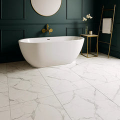 Experience refined tranquillity with the Venato Calacatta Matt White Marble Effect 600x600mm (60x60cm) Porcelain Wall and Floor Tile. Inspired by the elegance of Calacatta marble, these tiles feature a clean white base complemented by striking grey veining, perfectly replicating the natural beauty of stone while offering the strength and practicality of premium porcelain.